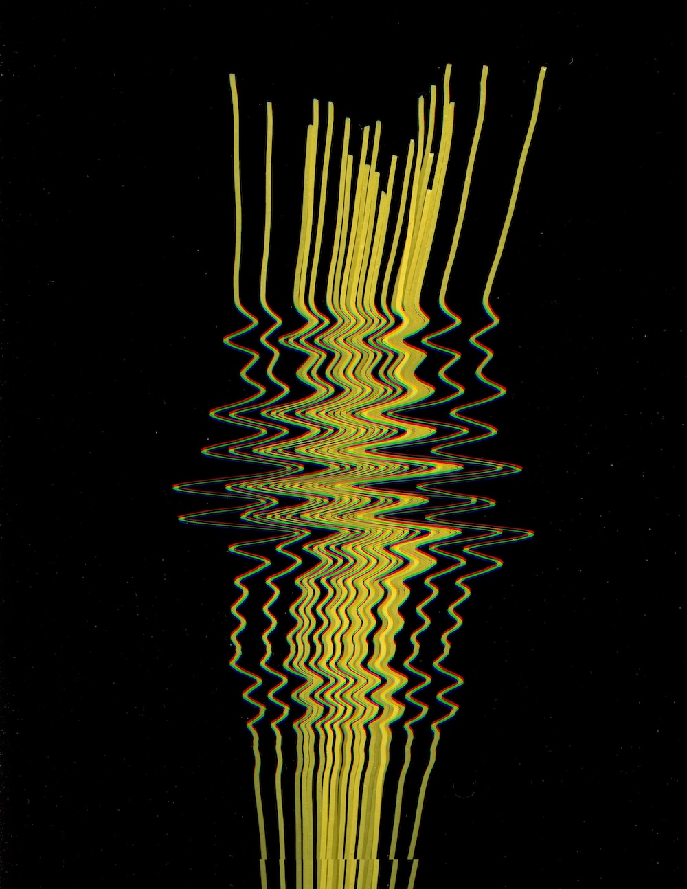 A flatbed scanner is not designed for moving subjects. It's a camera that meticulously moves row to row to capture fine details of a still object. So when the object is in motion, unexpected outcomes occur. The fine details of green and red waves emerge, even though there are no green or red spaghetti. But even more broadly, the wavy spaghetti does not exist outside of this scan. After the scan, the uncooked pasta goes back into its box, rigid and straight.